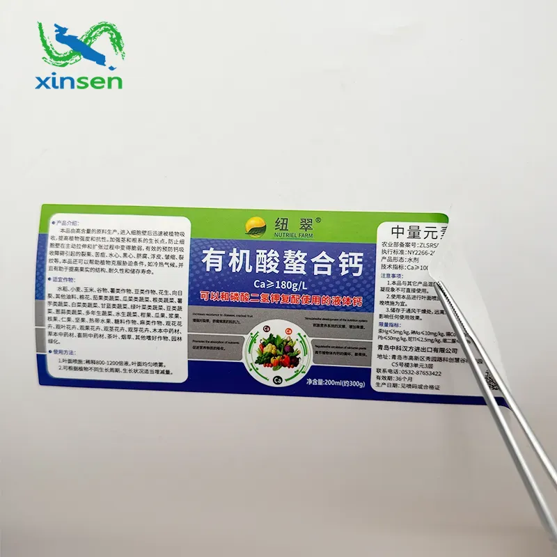 XINSEN, ammattimainen toimittaja, joka keskittyy räätälöityihin ravintolisämerkintöihin, on sitoutunut tarjoamaan turvallisia, vaatimustenmukaisia ja erittäin ammattimaisia etikettiratkaisuja maailmanlaajuiselle ravintolisäteollisuudelle. Elintarvikelaatuisten kestävien materiaalien ja tarkkuustulostusteknologian ansiosta XINSEN noudattaa tiukasti asiaankuuluvia säädösstandardeja maailmanlaajuisesti. Sen ravintolisämerkinnät tukevat kattavaa räätälöintiä, joka kattaa ainesosaluettelot, käyttöohjeet, tuotemerkkien logot, tehoa koskevat väitteet ja muun ydinsisällön.